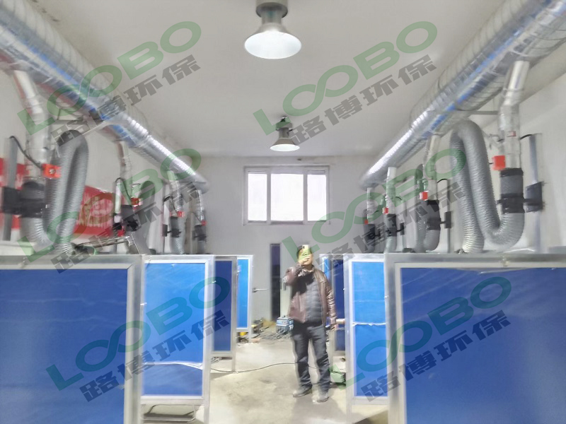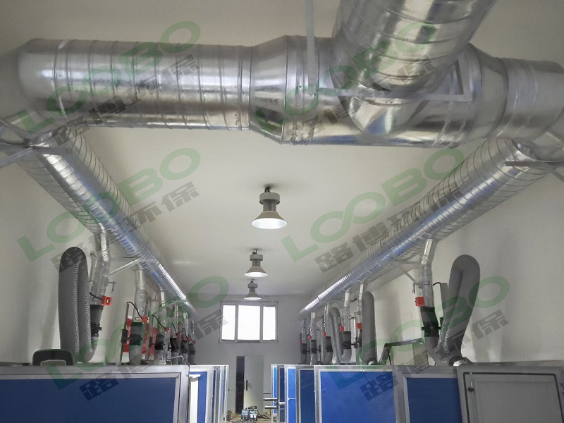 該項(xiàng)目為多工位焊接煙塵治理,采用工藝為中央煙塵凈化系統(tǒng),主要除塵設(shè)備LB-PC多濾筒除塵器,將多個(gè)工位設(shè)置柔性吸氣臂收集煙氣后集中通過管道進(jìn)入濾筒凈化器內(nèi)部進(jìn)行凈化,室外排放出潔凈的氣體。近年來做過很多學(xué)校的焊接除塵項(xiàng)目,總結(jié)經(jīng)驗(yàn)為更多的學(xué)校提供更好的服務(wù),解決大氣污染的問題,保障了學(xué)生的健康。