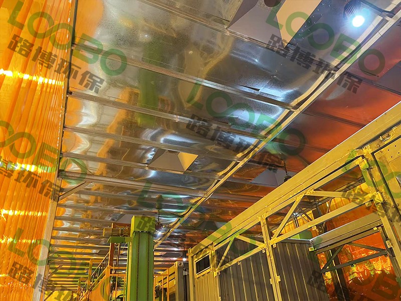 焊接煙塵治理系統(tǒng)項目治理區(qū)域主要包含頂板自動焊工位、側(cè)立焊工位、橫焊工位等。對于頂板自動焊工位及側(cè)立焊工位采用頂部固定式集氣罩口對焊接煙塵進行高效捕集,橫焊工位則采用將工位頂部封裝、側(cè)面安裝軟簾的獨特形式進行煙塵捕集,補集后的煙塵經(jīng)管道進入除塵器內(nèi)進行凈化過濾,隨后直接在室內(nèi)排放。