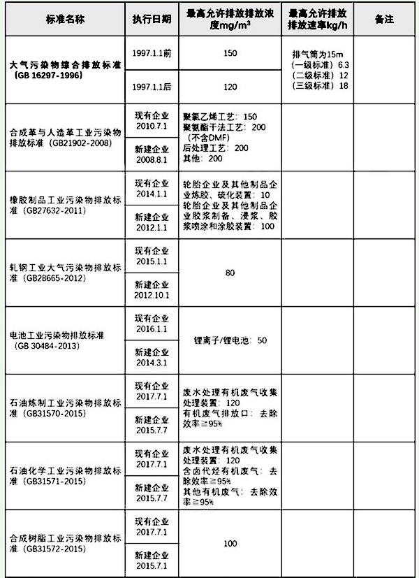 國家VOCs有機廢氣排放標(biāo)準(zhǔn)