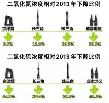 (一)《大氣十條》實施以來,全國城市空氣質(zhì)量總體改善,PM2.5、PM10、二氧化氮(NO2)、二氧化硫(SO2)和一氧化碳(CO)年均濃度和超標(biāo)率均逐年下降,大多數(shù)城市重污染天數(shù)減少。