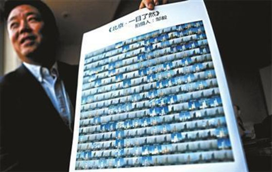 ??????? 鄒毅每天拍攝同一場(chǎng)景一張,組圖365張,讓大家一目了然看到北京的365天的天氣情況,呼吁公眾保護(hù)環(huán)境。這是他連續(xù)第二年以同樣方式記錄北京的天氣狀況。市民用手機(jī)拍下鄒毅的《北京·一目了然》第2季。