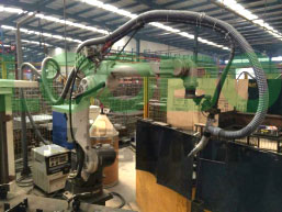 隨著先進(jìn)制造技術(shù)的發(fā)展,實(shí)現(xiàn)焊接產(chǎn)品制作的自動化、柔性化和智能化已成為必然趨勢。目前,采用機(jī)器人焊接已成為焊接自動化技術(shù)現(xiàn)代化的主要標(biāo)志。焊接機(jī)器人由于具有通用性強(qiáng)、工作可靠的優(yōu)點(diǎn),受到了人們越來越多的重視。由于焊接機(jī)器人焊槍工作路徑為編程控制,根據(jù)工件不同其焊槍工作路徑不固定,且工作時焊槍行走跨度較大,使得焊接機(jī)器人的焊煙治理較為麻煩。