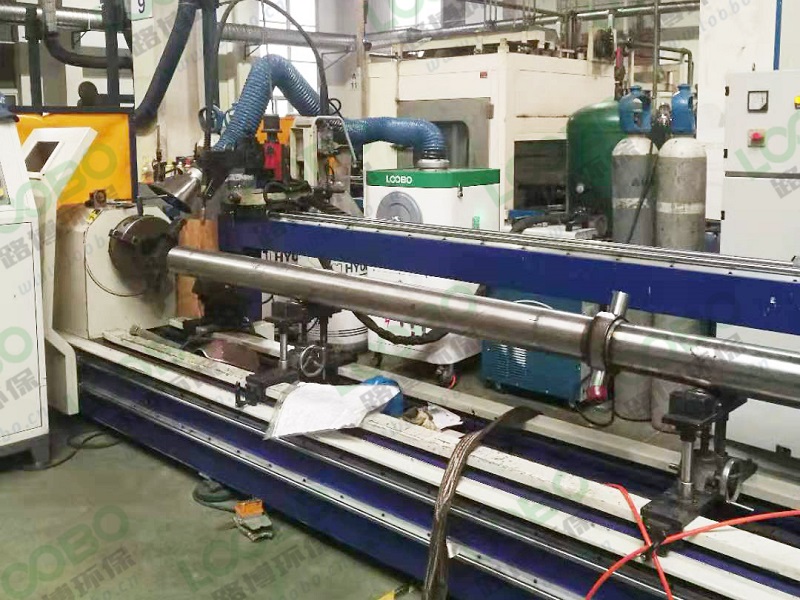 通過風(fēng)機(jī)引力作用,焊煙廢氣經(jīng)萬向吸塵罩吸入設(shè)備進(jìn)風(fēng)口,設(shè)備進(jìn)風(fēng)口處設(shè)有阻火器,火花經(jīng)阻火器被阻留,煙塵氣體進(jìn)入沉降室,利用重力與上行氣流,首先將粗粒塵直接降至灰斗,微粒煙塵被濾芯捕集在外表面,潔凈氣體經(jīng)濾芯過濾凈化后,由濾芯中心流入潔凈室,潔凈空氣經(jīng)出風(fēng)口達(dá)標(biāo)排出。